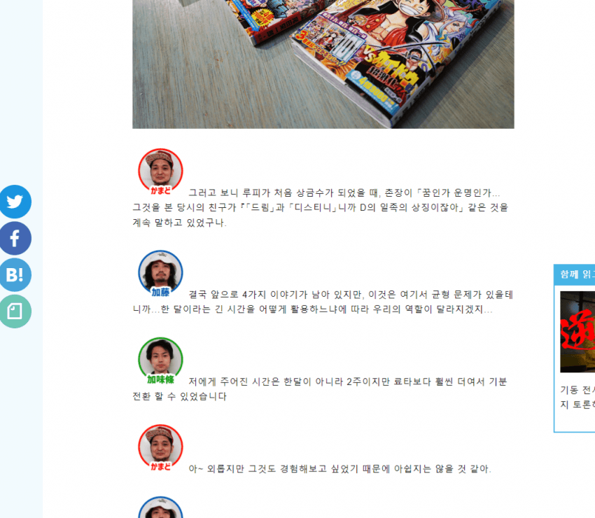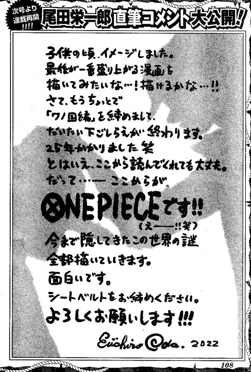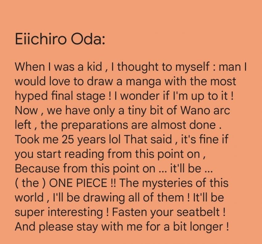 원피스 마지막 에피소드를 앞둔 오다가 남긴 글